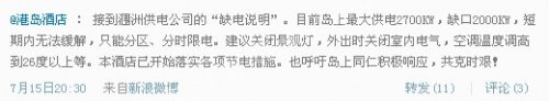 (各大潿洲島酒店開始微博公告限電消息)