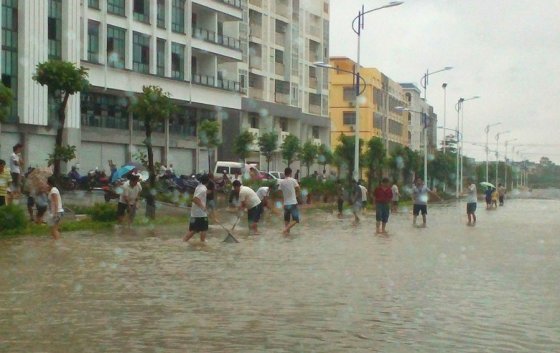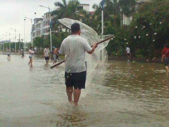 部分街道內(nèi)澇 市民張網(wǎng)捕魚