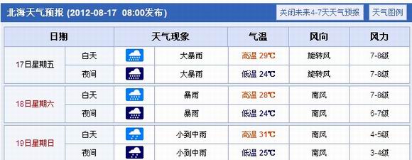 另據(jù)氣象局預(yù)計北海未來天氣情況如下: