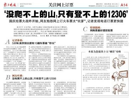 記者也再次提醒網(wǎng)上訂票的市民,1、電腦登錄后,如果三四分鐘不操作,就會被踢出去,但用iphone的瀏覽器登錄12306網(wǎng)站,不會被電腦踢出去。2、前天很多媒體建議電話訂票后,昨天訂票電話也打不進(jìn)去了。沒關(guān)系,耐心點(diǎn),不停地打。3、盡管很多購票軟件是騙人的,但也有少量靠譜的,IT技術(shù)人士會在微博里進(jìn)行推薦,網(wǎng)友們也可以留意。不過這些軟件一旦被發(fā)現(xiàn),也會被禁止使用。
