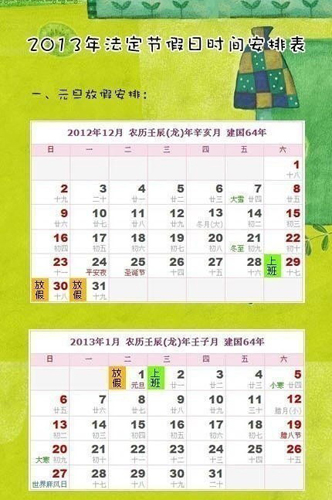 (網(wǎng)上流傳的2013年節(jié)假日時(shí)間安排表。資料圖)