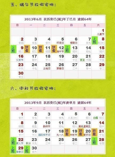 剛剛?cè)攵陀芯W(wǎng)友忍不住制作了2013年節(jié)假日時(shí)間安排表,有網(wǎng)友說(shuō)“就看到了明年的希望”。元旦、春節(jié)、清明節(jié)、勞動(dòng)節(jié)、端午節(jié)、中秋節(jié)和國(guó)慶節(jié)的假期網(wǎng)友們已經(jīng)給你模擬出了,下面為您倒騰了兩份休假方案,結(jié)合年假,周末和法定節(jié)假日。出國(guó)旅游?時(shí)間完全木有問(wèn)題!