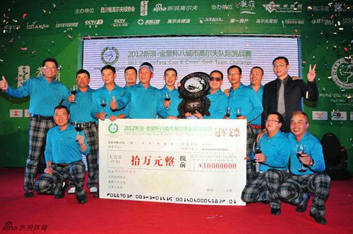 11月28日,由四川省高爾夫球協(xié)會(huì)、新浪網(wǎng)、金堂縣房地產(chǎn)業(yè)協(xié)會(huì)、至尊旅程以及觀嶺球會(huì)共同主辦的2012“新浪-金堂杯”八城市高爾夫隊(duì)際挑戰(zhàn)賽,在四川金堂藍(lán)光·觀嶺高爾夫球會(huì)隆重開(kāi)賽。來(lái)自北京、上海、沈陽(yáng)、南京、深圳、武漢、成都以及北海等八座城市的八支高水平業(yè)余高爾夫球隊(duì),總計(jì)百余名高爾夫球友,為著各隊(duì)的榮譽(yù)展開(kāi)了為期兩天的激烈角逐。在全國(guó)知名球隊(duì)高手如云的較量中,最終北海高協(xié)和安隊(duì)以總成績(jī)1044桿(385-659)奪得了冠軍,并獲得了10萬(wàn)元的球隊(duì)發(fā)展基金,賽事主辦方還特制了富含四川傳統(tǒng)文化的蜀繡獎(jiǎng)杯作為紀(jì)念。對(duì)于本賽事及北海高協(xié)和安隊(duì)的奪冠消息,新浪網(wǎng)及《成都商報(bào)》等主流媒體均作了頭版頭條報(bào)道。