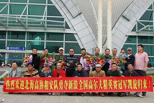 據(jù)報(bào)道,近日,北海高協(xié)和安高爾夫球隊(duì)在新浪網(wǎng)舉辦的全國(guó)性高爾夫球賽事中,代表廣西奪得團(tuán)體冠軍載譽(yù)歸來(lái),11月30上午全隊(duì)從成都飛抵北海,在機(jī)場(chǎng)受到熱烈的歡迎與祝賀。