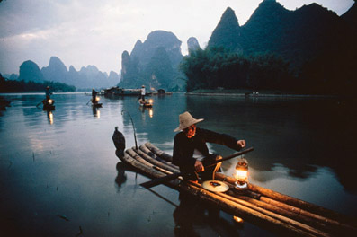 自宋代起,漓江就流行“漓江漁火”,它是陽(yáng)朔具有千年歷史積淀的人文民俗景觀,原是漓江上的一種傳統(tǒng)漁事活動(dòng):小竹筏上點(diǎn)一盞耀眼的燈火,燈光引來(lái)了趨光性的游魚,魚鷹借著燈光,把魚兒捕獲叼給它的主人。夜幕下的江面,漁民成群結(jié)隊(duì)乘筏游梭,江面上便出現(xiàn)點(diǎn)點(diǎn)游星,與秀美絕倫的漓江山水大背景融成一幅令人嘆為觀止的絕妙景觀,成為傳統(tǒng)“陽(yáng)朔八景”之一“漓江漁火”。