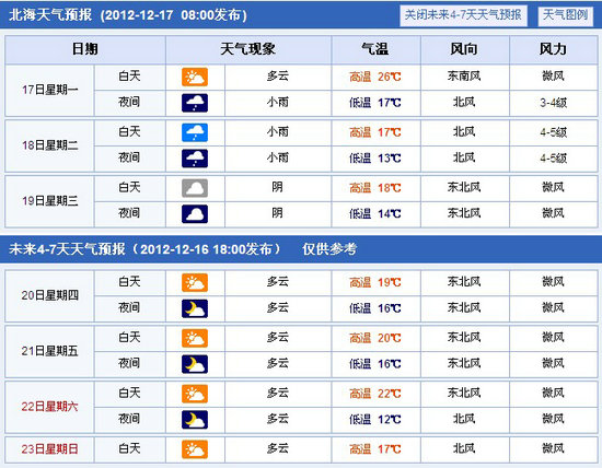 北方冷空氣正在南下,預計12月18日凌晨影響我市,北部灣海面,今晚到明天,東南風4到5級,18日凌晨起偏北風5到6級陣風7級。北海港升掛強風信號一號風球;北海市,今晚到明天,多云間陰,東南風3級,氣溫22到26度;18日,有小雨,偏北風4到5級,14到18度。