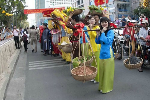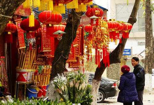 春節(jié)是越南民間最大也最熱鬧的傳統(tǒng)節(jié)日。越南人把春節(jié)視為辭舊迎新的日子,一般從農(nóng)歷12月中旬開(kāi)始辦年貨準(zhǔn)備過(guò)年,而歷來(lái)越南春節(jié)最不可少的大概要數(shù)鮮花、年粽、春聯(lián)、爆竹了。