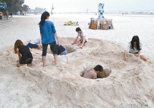 另外4月15日 北海藝術設計職業(yè)學院第十三屆學生運動會及沙雕比賽在銀灘舉行。大學生們享受看陽光/海水、沙灘,參加運動會的同學在激烈競技,參加沙雕比賽的忙著創(chuàng)作參賽作品,整個銀灘成了運動和藝術的天堂。