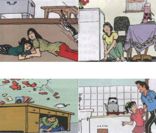 在樓房內(nèi)遇到地震的話,千萬不可在慌亂中跳樓?啥惚茉趫詫嵉募揖呦禄驂翘,也可轉(zhuǎn)移到承重墻較多、開間小的廚房、廁所去暫避一時。因為這些地方結(jié)合力強,尤其是管道經(jīng)過處理,具有較好的支撐力,抗震系數(shù)較大。廚房和廁所有食物和水源,可以幫助支撐多一些時間。