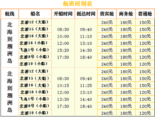 1)船型、航班時(shí)刻、單程票價(jià):