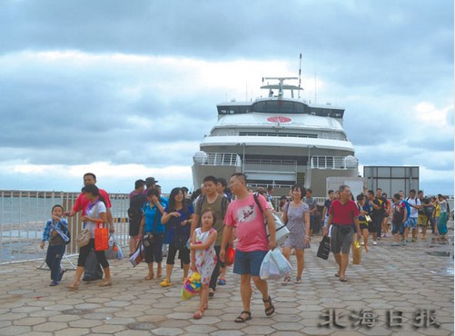 據(jù)新奧公司工作人員介紹,當日由于天氣原因,該公司開往潿洲島的只有噸位較大的“北游12”,該船可載客近千人,預(yù)計當日航班為3班,游客運載量約為3000人。