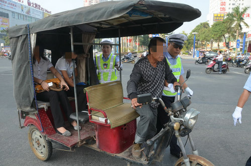 據(jù)介紹,“四車”交通違法行為,指的是人力板車在道路上通行,燃油助動(dòng)車上路行駛,殘疾車無(wú)牌無(wú)證、非法改裝、非法載客,人力三輪車無(wú)牌無(wú)證、加裝動(dòng)力裝置以及在禁行時(shí)間和路段通行。隨著近兩年北海城市外來(lái)人口的急劇增多,大量外來(lái)人員加入“四車”非法營(yíng)運(yùn)行列,不配合執(zhí)法以及暴力抗法現(xiàn)象明顯增多,讓執(zhí)法部門的整治工作難度不斷加大。