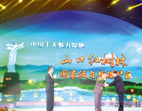 我們北海的山口紅樹林剛獲得中國十大魅力濕地,頒獎典禮上是廣西紅樹林研究中心主任范航清博士代表“北海山口紅樹林濕地”,第一個上臺領(lǐng)獎哦!還有宋祖英會在頒獎典禮上現(xiàn)場演唱“美麗中國 濕地行”活動的主題曲《水美圖》。大家到時候記得打開電視收看啊。