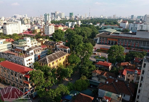 河內(nèi)中心的建筑工程與綠樹板塊相互交錯