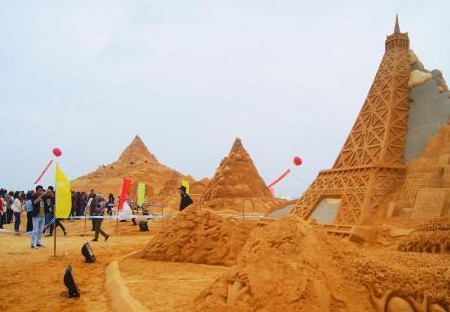 其中,展現(xiàn)中國與東盟國家友好歷史往來的“碧海絲路”高12米、長20米、寬18米。此次展出的8座巨型沙雕由來自浙江的一個團隊歷時近1個月創(chuàng)作而成,在11月中旬時曾被今年第30號臺風“海燕”摧毀而重塑。