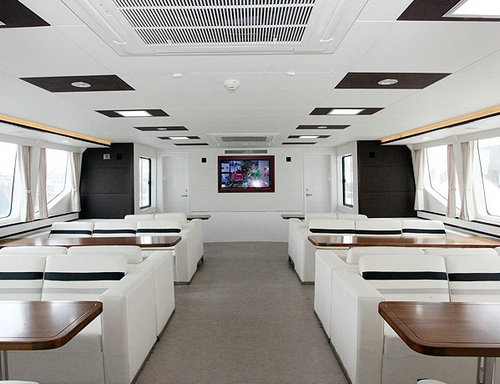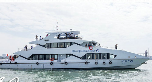 六艘游船當(dāng)中,可載游客50 人的“北港郵31、32 號”游輪,長22.63 米,寬6 米?奢d游客150 人的“北港郵21、22 號”游輪,長35 米,寬7.7 米?奢d游客300 人的“北港郵11、12號”游輪,長49 米,寬10 米。游船外觀均為觀光玻璃鋼材質(zhì),船內(nèi)配備商務(wù)自助餐臺、會議投影儀、海景觀光平臺等設(shè)施。