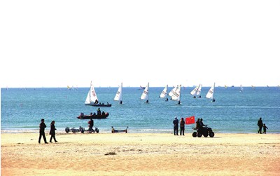 由國家體育總局水上運動管理中心主辦的2013年全國帆船帆板青少年訓(xùn)練營,日前在北海銀灘國家旅游度假區(qū)開營,進行為期一個月的訓(xùn)練。11月29日上午,在北海銀灘看到,參加集訓(xùn)的80余名青少年駕帆滑浪,為銀灘景區(qū)增添了一道靚麗的風景。