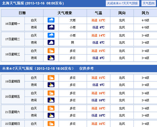 據(jù)北海氣象局最新天氣預(yù)報(bào),受較強(qiáng)冷空氣影響,北部灣海面:今天,陰天有大雨,偏北風(fēng)逐漸加大到7到8級,陣風(fēng)9級;17日,有小雨,偏北風(fēng)6級。北海港和潿洲島各臺(tái)風(fēng)警報(bào)站所掛的強(qiáng)風(fēng)信號一號風(fēng)球不改變。