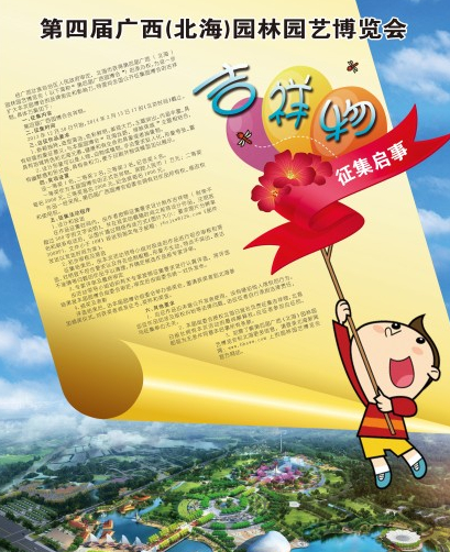 經(jīng)廣西壯族自治區(qū)人民政府審定,北海市獲得第四屆廣西(北海)園林園藝博覽會(huì)(以下簡(jiǎn)稱(chēng)“第四屆廣西園博會(huì)”)的承辦權(quán)。為進(jìn)一步擴(kuò)大本次園博會(huì)的品牌效應(yīng)和影響力,特面向全國(guó)公開(kāi)征集園博會(huì)的吉祥物,具體方案如下: