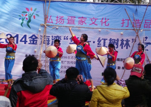 據(jù)報(bào)道,為弘揚(yáng)疍家文化打造品質(zhì)景區(qū),元旦當(dāng)天,北海市在金海灣紅樹(shù)林生態(tài)旅游區(qū)舉辦“2014金海灣‘華一·紅樹(shù)林’疍家民俗文化節(jié)”,富有本地民俗特色的疍家婚禮、疍家民謠、咸水歌、英姿颯爽的地角女民兵出現(xiàn)在市民和游客面前,深受大家的追捧。