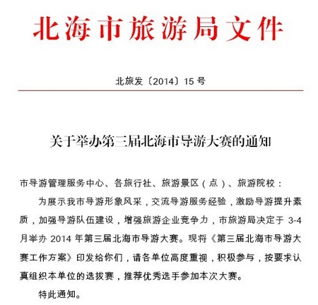 第三屆北海市導(dǎo)游大賽即將舉辦