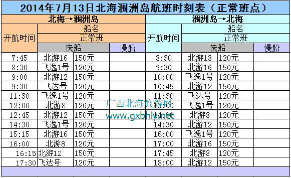 (北海旅行社訊)最近越來越多游客朋友計(jì)劃來北海游玩,詢問最多的便是潿洲的航班,讓我們網(wǎng)站的客服帥哥美女應(yīng)接不暇,為了讓大家都更加便捷直觀的查看,至今天起,本網(wǎng)將每天提前發(fā)布當(dāng)天潿洲島的航班信息。 以下是未來兩天(12、13日)的相關(guān)時(shí)刻表: