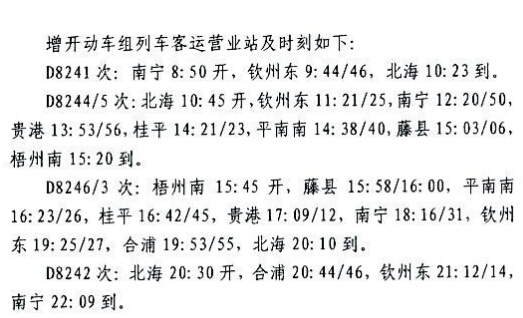 國慶北海方向再增開四趟動車