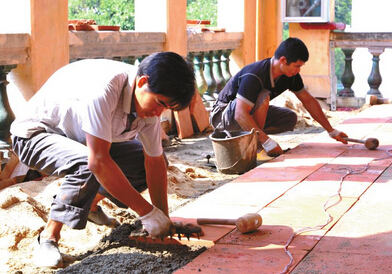 9日上午,記者在文化大院里的德國(guó)森寶洋行舊址看到,施工人員在舊址二層鋪設(shè)仿古方磚。據(jù)現(xiàn)場(chǎng)的施工人員介紹,國(guó)慶節(jié)前就已經(jīng)開(kāi)始施工,預(yù)計(jì)半個(gè)月左右地磚可鋪設(shè)完畢。