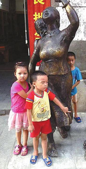 這6組新增的城雕姿態(tài)各異、惟妙惟肖,深受廣大市民和游客的喜愛(ài),大家在逛老街的同時(shí),紛紛駐足與這些新城雕合影留念。孩子與新城雕合影。