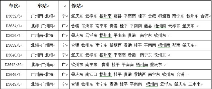 下面將北海-廣州南的動車時刻及停站信息清晰版整理出來,全程時間6個小時左右,最快5個小時44分。另據(jù)網(wǎng)友預(yù)測票價大概在230元左右。