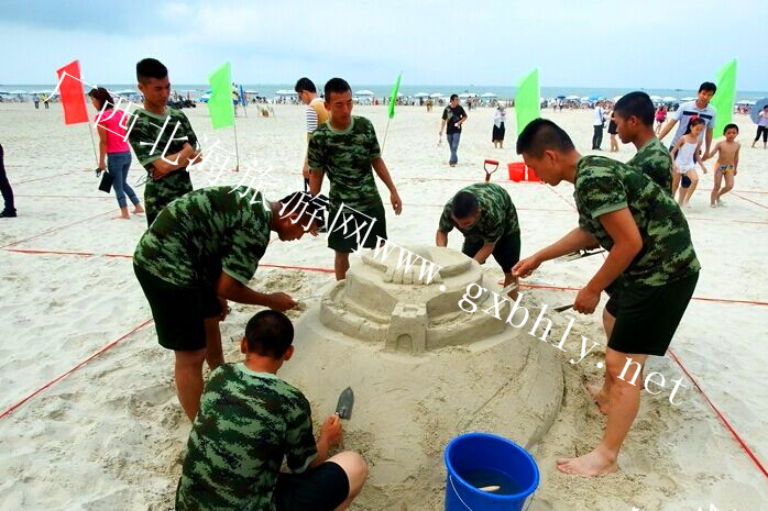 北海舉辦第九屆沙雕大賽,銀灘游客如潮