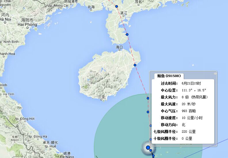 今年第8號臺風“鯨魚”(熱帶風暴級別)于21日11時在南海中部海面生成,其中心位于北緯15.9度、東經(jīng)111.5度,距海南省三沙市(西沙永興島)西南方向約140公里,中心附近最大風力有8級(18米/秒)。
