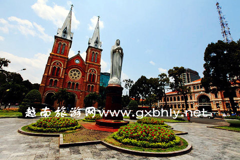 紅教堂是胡志明最著名的地標(biāo)建筑,坐擁胡志明市中心,最熱鬧和繁華之處,中央郵局在其左側(cè),一處可看兩景,是一座最具王者氣質(zhì)的教堂。紅教堂建于1883年,仿照巴黎圣母院鐘樓之設(shè)計(jì),建造教堂的紅磚全部從法國(guó)運(yùn)來,一百多年過去,其色澤依然鮮明,毫無褪色。教堂前花園廣場(chǎng)上一座重達(dá)四噸的圣母瑪麗亞雕像,系1945年羅馬教會(huì)所贈(zèng)。教堂外部門廊等部位布滿精美雕飾,內(nèi)部四周均為小祈禱室,每一間的神龕、雕塑及裝飾均不相盡同,于變化中盡善盡美。