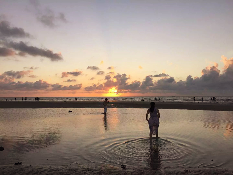 在潿洲島吹著海風(fēng),美美地喝上一杯椰子汁,那真是一件十分享受的事情了,觀海上日出日落,是每個(gè)來到潿洲島的遠(yuǎn)行者夢(mèng)寐以求的。滴水丹屏,雖有沙灘,卻以海蝕崖景點(diǎn)為主,也是觀賞日落最佳地點(diǎn)。潿洲島的海灘每個(gè)都各不相同,各有各的特點(diǎn)。五彩灘是以石頭灘為主,沒有沙灘。而貝殼灘,則以珊瑚石為主。