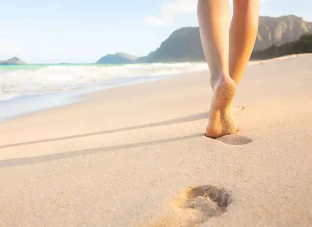 光腳走在沙灘上,癢癢的,仿佛細鹽,又像軟沙,只想一直就這樣走下去,走到天之涯、海之角。傍晚的時候,海邊靜謐安詳,濤聲疊疊,樹影婆娑,不如把身心交付大海。溫情北海,十里銀灘,難以令人割舍!