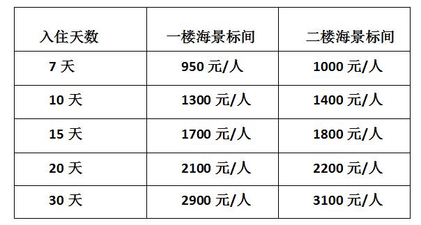 【2018年冬季“候鳥計劃”健康親情游價格表(日供三餐)】