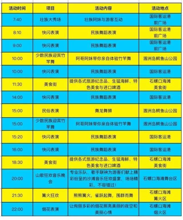 三月三”(3月30日—4月4日)去潿洲島的網(wǎng)友們,你可能在客運(yùn)碼頭、潿洲島碼頭、火山口公園和潿洲臨時(shí)候船廳等以下的地點(diǎn),遇到一群帥哥美女熱歌熱舞噢。