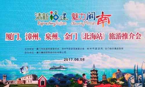 “孟夏之日,萬(wàn)物并秀”,6月8日,廈門市旅游發(fā)展委員會(huì)、漳州市旅游發(fā)展委員會(huì)、泉州市旅游局、金門縣交通旅游局?jǐn)y手走進(jìn)浪漫的北海,開(kāi)展“清新福建·魅力閩南”旅游推介會(huì)活動(dòng)。