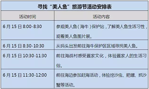 尋找“美人魚(yú)”旅游節(jié)活動(dòng)時(shí)間安排如下: