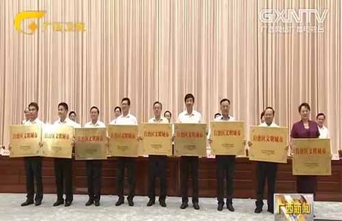 7月21日,廣西自治區(qū)召開精神文明建設(shè)大會(huì),對第七屆自治區(qū)文明城市進(jìn)行了表彰。自治區(qū)黨委、自治區(qū)人民政府決定授予南寧市 、桂林市、柳州市、梧州市、玉林市、來賓市、貴港市、欽州市、北海市9個(gè)城市“自治區(qū)文明城市”榮譽(yù)稱號。