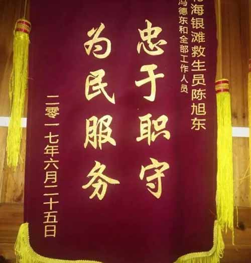 7月31日,來自廣東的黃雅莉女士將一面印有“忠于職守 為民服務(wù)”的錦旗親自送給銀灘救生隊(duì)員,以感謝救生隊(duì)員陳旭東、馮德東和全體工作人員熱心幫助尋物的善舉。