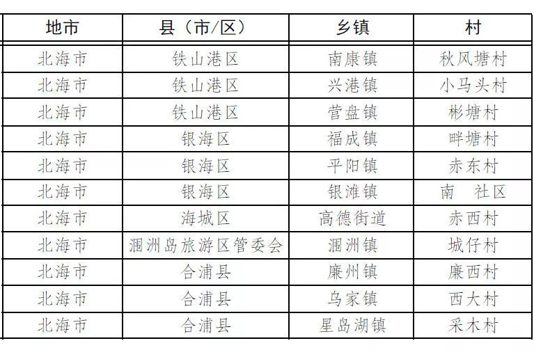 2017 年自治區(qū)級(jí)生態(tài)村名單(北海)