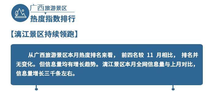 潿洲島景區(qū)排在全區(qū)第二位,銀灘景區(qū)也入榜前十。12月份,隨著熱門綜藝《三個院子》開播、獻(xiàn)禮自治區(qū)成立60周年大劇《北部灣人家》劇組前來島上拍攝等宣傳帶動作用,潿洲島熱搜量一直居高不下。
