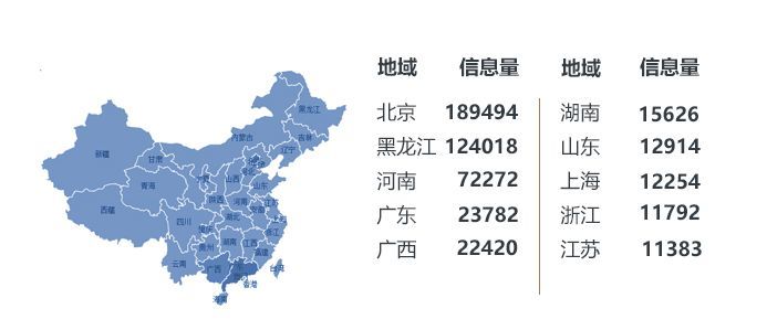 從地域分析看,除廣西本地的網(wǎng)友外,北京和黑龍江的網(wǎng)友對廣西旅游的相關信息也同樣關注。