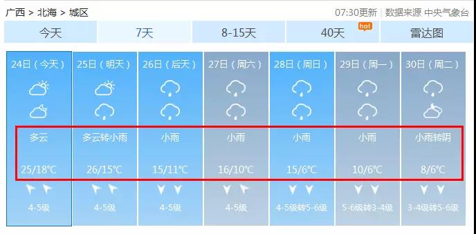 據(jù)廣西氣象臺(tái)預(yù)報(bào):24日,全區(qū)多云到陰天,其中桂北、桂中有分散小雨;25日,桂北、桂中陰天有分散小雨,局部中雨,我區(qū)其他地區(qū)多云到陰天;26-27日,全區(qū)陰天有小雨,其中桂北部分地區(qū)有中雨,局部大雨到暴雨,高寒山區(qū)及桂東北局部地區(qū)有雨夾雪或凍雨,湘桂鐵路沿線、沿海地區(qū)及北部灣海面有5-6級(jí)、陣風(fēng)8級(jí)偏北風(fēng),全區(qū)降溫8℃-10℃,局部11℃以上,桂北和桂中的部分地區(qū)有寒潮天氣,高寒山區(qū)最低氣溫為零下4℃-零下1℃,桂北最低氣溫為0℃-4℃,桂中最低氣溫為4℃-8℃,桂南及左右江河谷最低氣溫為8℃-11℃;28日,全區(qū)陰冷有小雨,局部有中雨;29日,全區(qū)小雨轉(zhuǎn)陰天;30-31日,全區(qū)陰天轉(zhuǎn)多云。