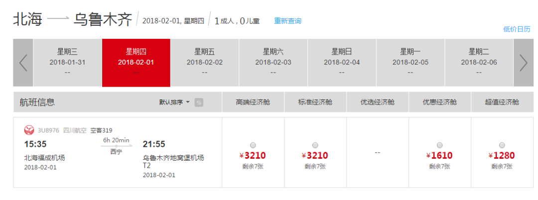今日起(2月1日)四川航空新增北海—西寧—烏魯木齊往返航班