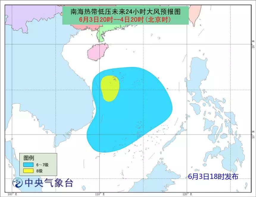 預(yù)計(jì),低壓中心將以每小時(shí)10公里左右的速度向偏北方向移動(dòng),強(qiáng)度逐漸加強(qiáng),將于3日夜間到4日白天發(fā)展為今年第4號(hào)臺(tái)風(fēng)(熱帶風(fēng)暴級(jí)),并逐漸向海南島東南部一帶沿?拷。