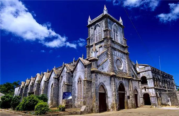 潿洲島盛塘天主教堂位于潿洲島盛塘村,是全國重點(diǎn)文物保護(hù)單位,“晚清四大天主教堂”之一,是典型的文藝復(fù)興時期法國哥特式教堂,外表高聳的羅馬式尖塔有著“向天一擊”的動勢,造成一種“天國神秘”的幻覺。