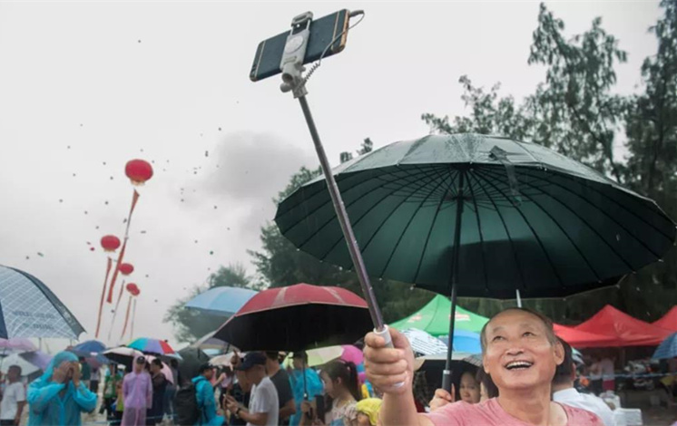 “這是漁民開海前的祈福儀式!眮碜晕鞅钡膭⑴恐钢枧_(tái)上正在進(jìn)行的祈福儀式向7歲的女兒介紹道。劉女士告訴記者,居住在西北的女兒很少接觸大海,并不了解海洋文化。得知北海舉行2018年北海第二屆開漁儀式,她專程帶著女兒來到北海觀看,讓女兒親身感受海洋民俗文化,這遠(yuǎn)遠(yuǎn)比在書本或電視上看更為形象生動(dòng)。劉女士表示,雖然天空下著雨,但能全程觀看祭海儀式,欣賞到疍家風(fēng)情歌舞,還能品嘗海鮮美食,這趟旅行值了。