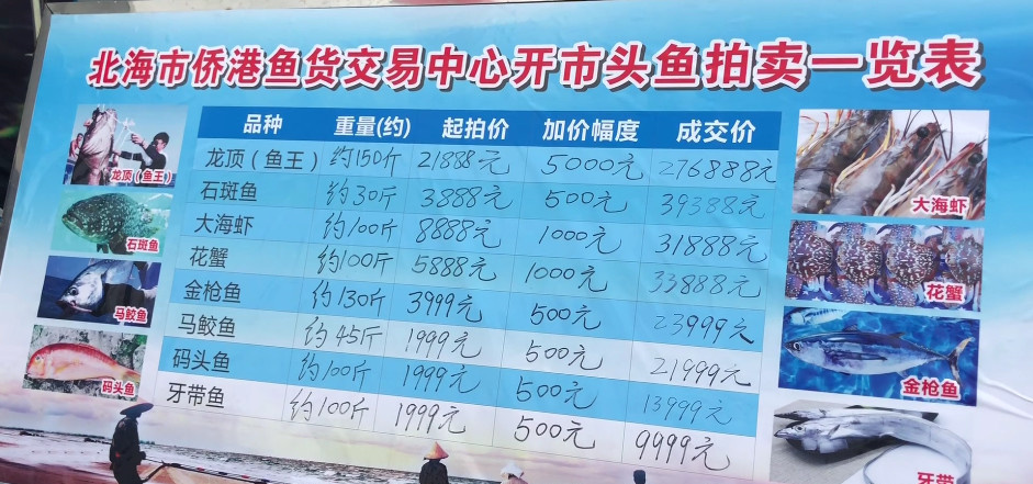 2018年8月18日,廣西北海市銀海區(qū)僑港鎮(zhèn)電建碼頭舉行了一場頭魚拍賣活動,其中一條重達(dá)152斤的龍頂(魚王)在經(jīng)歷了10分鐘的搶拍之后,最終276888元落槌!